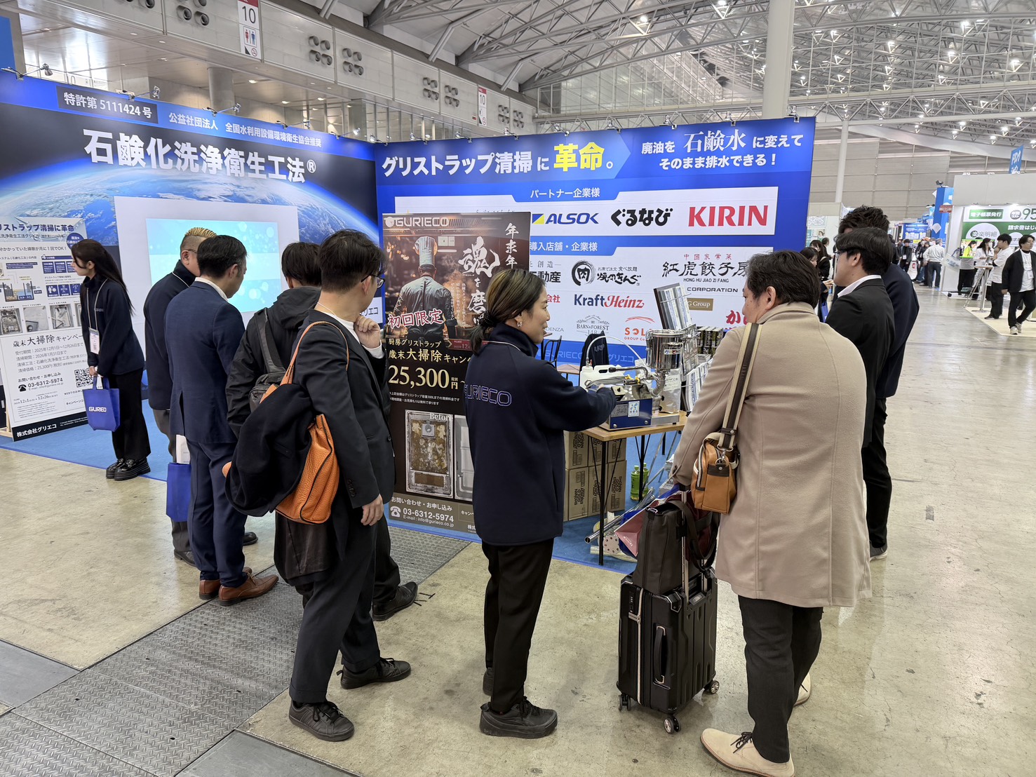 来場いただいた飲食店経営者様、飲食業界関係企業様からは、日々の飲食店経営における悩みや課題について多くのお声をいただき、グリストラップの重要性と、適切なメンテナンスソリューションへのニーズの高さを改めて実感いたしました。
